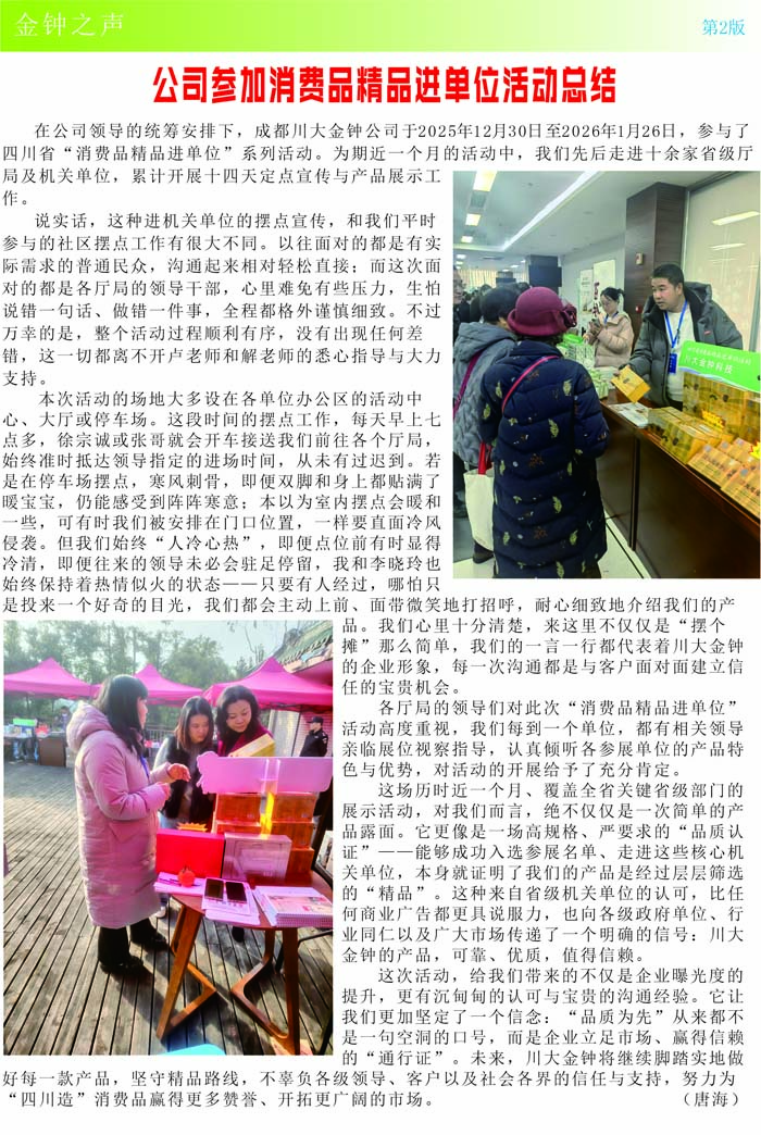 金钟之声2026年1月总第241期- 成都川大金钟科技有限公司